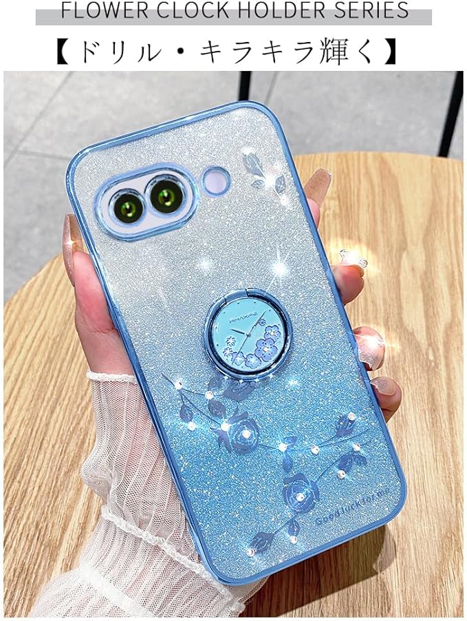 Google Pixel 9a 用 ケース リング付き クリア キラキラ メッキ加工 花柄 ソフトケース TPU 薄型 おしゃれ かわいい 衝撃吸収 ブランド グーグル ピクセル 9a カバー (ブルー, Pixel 9a)