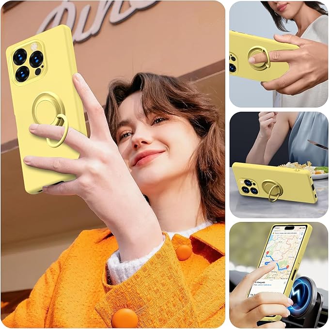 Google Pixel 9A 用 ケース リング付き シリコン 耐衝撃 ストラップホール付き TPU ソフト カバー 薄型 スタンド機能 車載ホルダー対応 リストストラップ 落下防止 防塵 軽量 一体型 変形防止 全面保護カバー ピクセル 9a 用 ケース 黄 W-YZHS-06-05