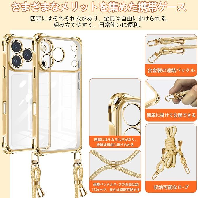 iPhone 17 Pro Max 用 ケース TPU 耐衝撃 おしゃれ アイフォン 17 pro max ショルダー 掛縄け ストラップ付き 斜めがけ 縦/横 2WAY 調節可能なショルダー 薄型 軽量 落下防止 滑り止め新構造 柔軟 高質感