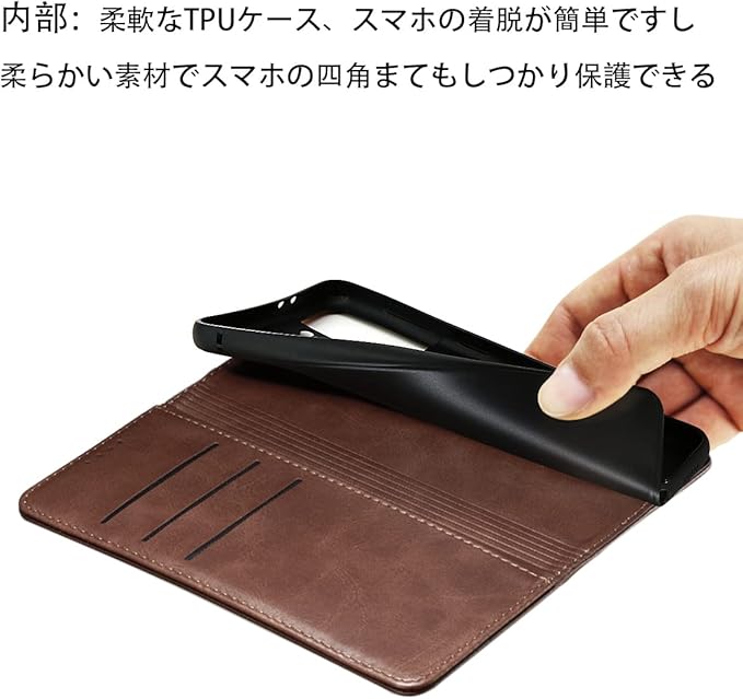 Google Pixel 9A ケース 手帳型 高質PUレザー Pixel 9A ケース Google Pixel 9A カバー ルピクセル7 ケース 手帳型 耐衝撃 内蔵マグネット開閉式 ベルトなし スマホケース おしゃれ カードポケット スタンド機能 便利 スプラット同梱 携帯ケース(ダークブラウン)