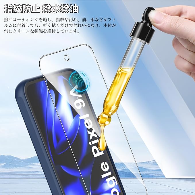 【汚れに強い】撥水・撥油加工が指紋や皮脂の付着を防ぎます。フィルムの表面には様々な特殊加工が施されており、油分、ほこり、指紋に強く、スマートフォンを常に清潔な状態に保ち、見た目の美しさや画面体験にも影響を与えません。頻繁にスマホを拭かないようにします。