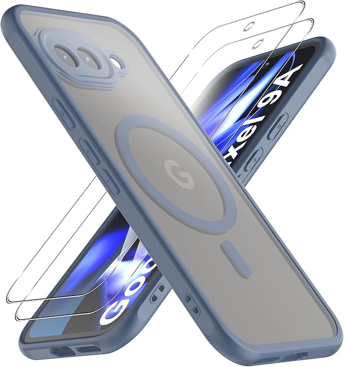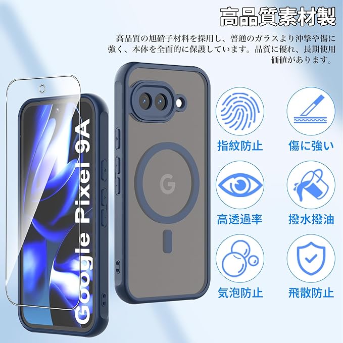 【1個+2枚セット】For Google Pixel 9a ケース(1個 MagSafe対応)+ガラスフィルム(2枚) Greerass 保護ケース ガラスフィルム付き MagSafe対応 薄型 超軽量 耐衝撃 擦り傷防止 指紋 汚れ防止 手触り良い 着脱簡単 (ブルー)