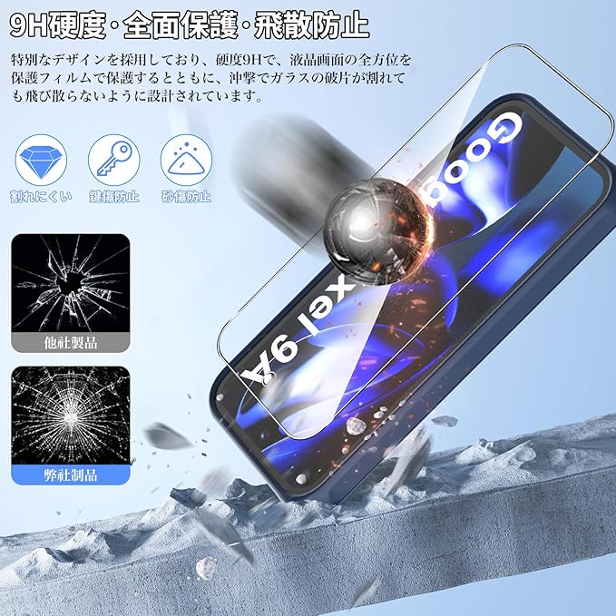 【ガラスフィルム付きの心配りある保護】日本製旭硝子材料を採用し、外部からの沖撃に強く、スマートフォンの画面への沖撃を防ぎます。また、特殊な飛散防止設計により、フィルムが割れても飛散せず、高い安全性を実現しています。スマートフォンを全面的に保護し、液晶画面の安全を守り、長く安心してお使いいただけます。