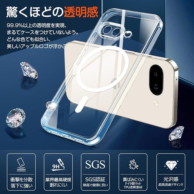 Google Pixel 9A ケース MagSafe対応 ガラスフィルム セット ワイヤレス充電 耐衝撃 マグネット搭載 ピクセル9A ケース マグセーフ対応 耐久性 黄ばみなし 滑り止め 指紋防止 ストラップホール付き カバー クリア