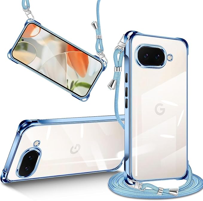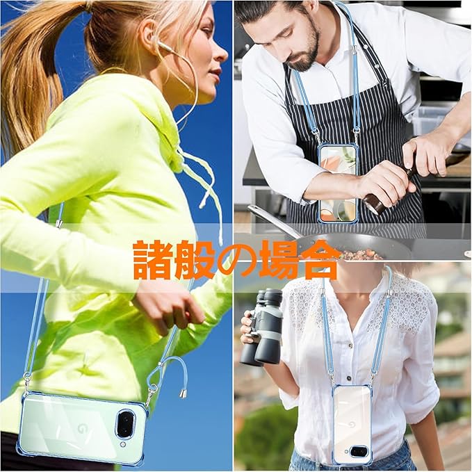 For Google Pixel 9a 用 ケース クリア ショルダー スマホケース ピクセル 9A カバー 肩掛け 縄掛けケース 透明 TPU 薄型 耐衝撃 携帯ケース 紐付き 斜めがけ ストラップ着脱可 織りストラップ付き ネックストラップ 縦/横 2WAY 長さ調整可能 取り外し可能 落下防止 紛失防止 かわいい おしゃれ 女性 男性 (ブルー)