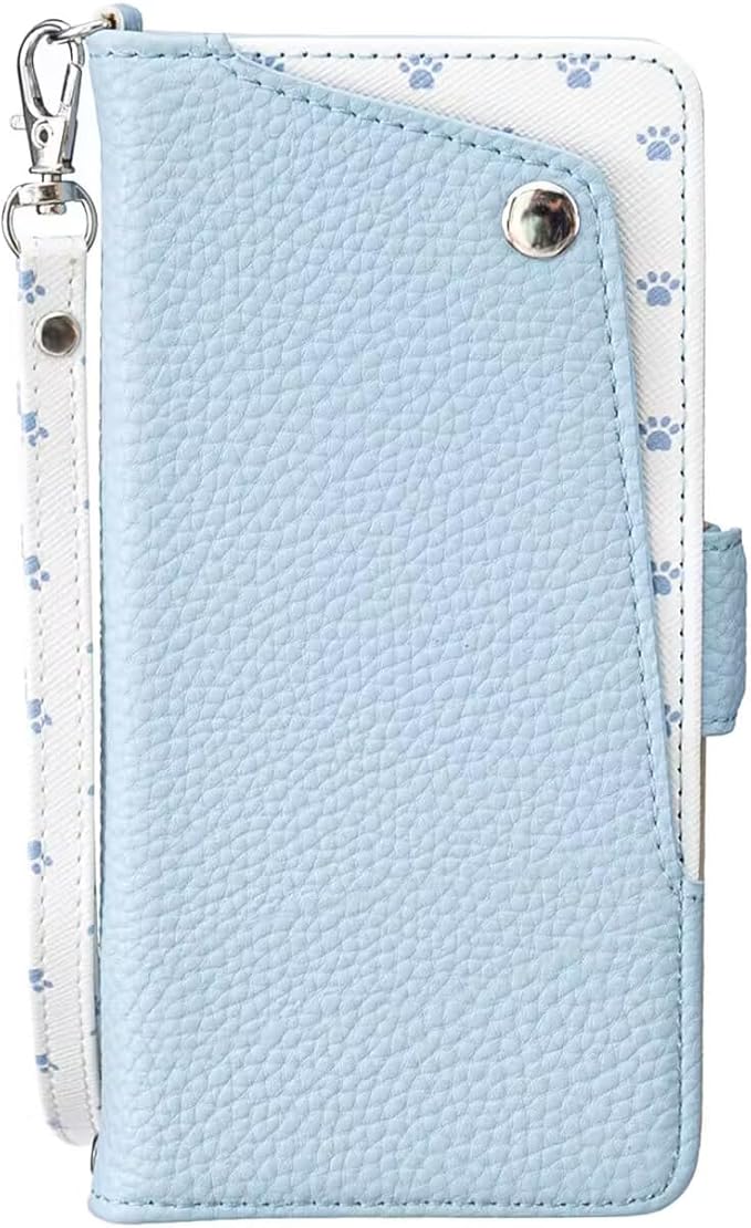 case for Google pixel 9A対応カバー グーグル ピクセル9aケース手帳型 かわいい 猫の足跡 ストラップ付き マグネット式 財布型 横置きスタンド機能付き カードポケットつき 耐衝撃 全面保護 (B4-青, Google pixel 9A対応)