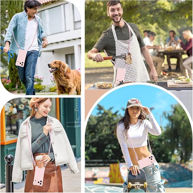 iPhone 17 Pro Max 用 ケース ショルダー いphone17promaxケース ストラップ 調節可能な アイフォン 17ProMax 肩がけ 首掛け 紐付き 斜めがけ 縄掛け スマホケース あいふおん17 pro max カバー 耐衝撃 薄型 透明 シリコン TPU 保護 バンパー ストラップホール付き 縦/横 2WAY 取り外し可能 (ピンク)