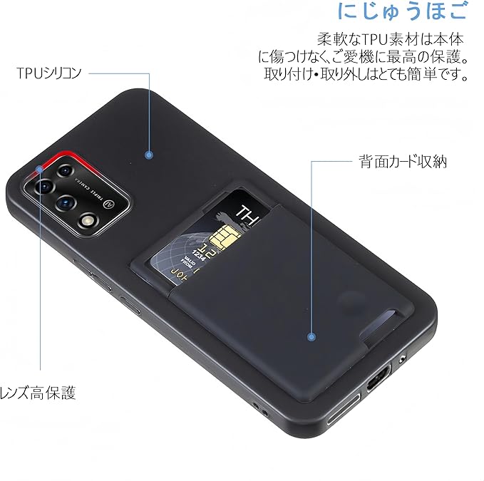 ※製品説明 ★ 日常使い、出張、フォーマルな場面にも適しています。 ★【カード収納】背面にはカードを収納するスペースがあり、ICカードやクレジットカードを入れておけば、財布をカバンから取り出してカードを探す手間を省くことができます。また、カードをしっかり収納できるようタイトめに作られているので、持ち運ぶ際に落ちてしまう心配もございません。 ★【精確的なデザイン】スマホカバーの各ボタン部位やスピーカー位置は携帯電話に従って精密設計され、各ボタンにピッタリあって。各ボタンにピッタリあって。また、右下にはストラップホールを搭載しているので、お好みのストラップをつけて ★【簡単着脱&超薄・超軽量】は柔らかいTPU素材を採用。脱着簡単で、携帯電話とカバーの擦れを防止できます。このケースは、携帯電話全体をしっかりと保護すると同時に、簡単な着脱も可能にしています。 厚さが約1.2mmと極薄なので、長く持っても手が疲れる感じもありません。シリコンな薄い電話ケースを着た後に、あなたは重い感じがしません、また、あなたの携帯電話を保護します。 ★【ストラップ同梱】短いハンドストラップ一本が指掛け用と腕掛け用、どんなシーンでもお都合によりケースと最も相応しい組み合わせを作ることができます。 ★ 100%満足保証:AGAIY 高品質スマホケースにこだわりAmazonの30日間の返品ポリシーの対象です。すべての販売およびプロモーションアイテムは、返品・交換の対象となります。もし品質上の問題があった際もご連絡頂ければ、新品交換または払戻しを致します。