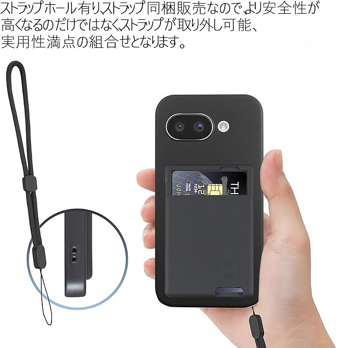 【 Agaiy 】Google Pixel 9A 対応 ケース 背面カード収納 耐衝撃 薄型 軽量(ブラック) グーグル ピクセル9A TPUスマホケース 全面保護 超耐磨 マット質感 ストラップホール付き 携帯便利 pixel9a ケース 黒