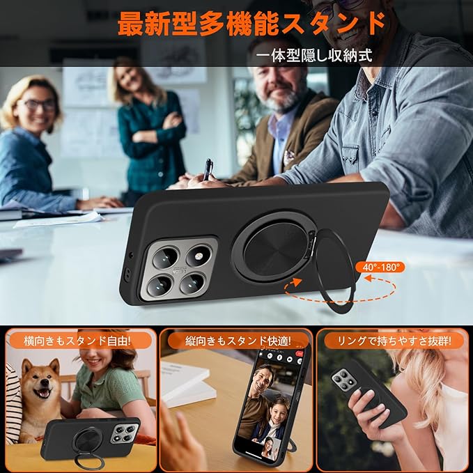 【多機能360度!縦も横も思いのまま!】Google Pixel 9a 用ケースは、革新的な隠し式スタンドデザインを採用しています。360 回転スタンド機能により、縦置き・横置きどちらの状態でも安定して利用でき、0 ~ 150 の間で多角度自由に調整できます。。動画視聴、オンライン授業、リモート会議、ビデオ通話などで大活躍、あらゆる視聴の瞬間をお楽しみください。スタンド台を持ち運ぶ必要がなくなり、外出時にも便利です。手に取るだけでリングとしても使えるので、機能性にも優れています。