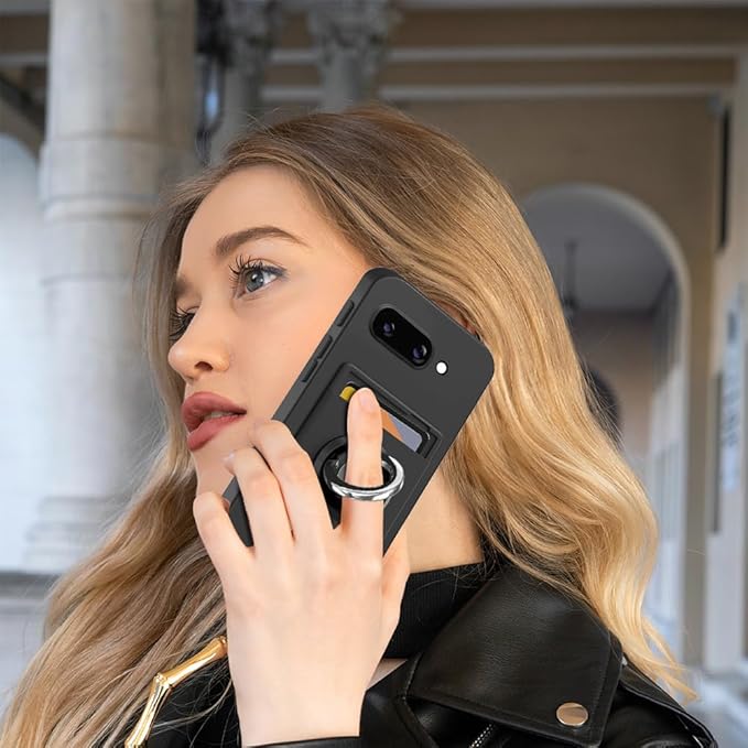 対応 Google Pixel 9a ケース リング付き シリコン カード収納 ピクセル9a スマホカバー スタンド機能 360 回転リング 耐衝撃 滑り止め 黑