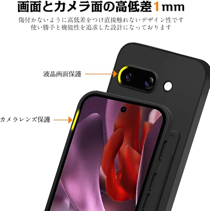 【カメラレンズ保護】 Google Pixel 9a 本体の薄さを維持しつつ、ケースカメラ部分にはカメラレンズより1mm高く、カメラレンズの周りを保護し、レンズの傷つきを防止できます。