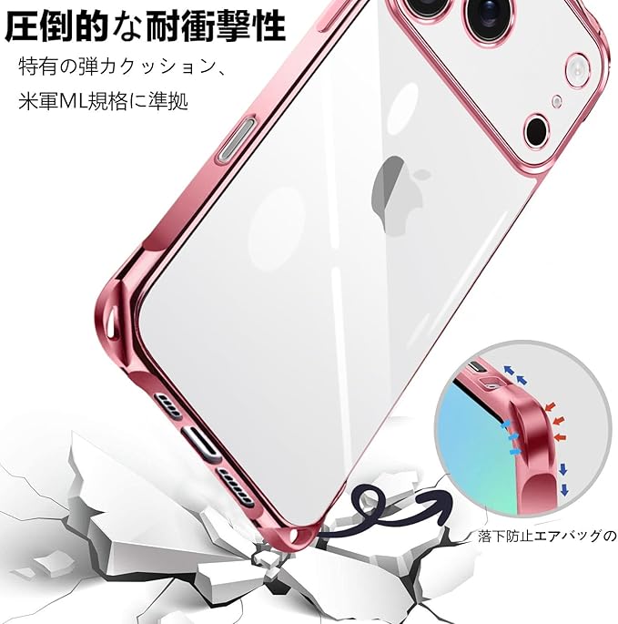 【カメラレンズ保護 & ディスプレイ保護】カメラはオールインクルーシブ保護設計を採用しており、精密な突起が大切なカメラを保護します。レンズ保護フィルムを取り付ける必要はありません。4つのバンパーには、背面に突起があります。iPhone 17 pro max/アイフォン17 pro max のカメラレンズより1.5ミリ高い立ち上がって、有効的に擦り傷を防ぎます。液晶画面より約1.5mm高く設計され地面と接触するのを防止、外部との擦り傷を避けるし、精確なホールデザインは携帯にもジャストフィツトしていて、すべてのポートとボタンも押しやすくなります。