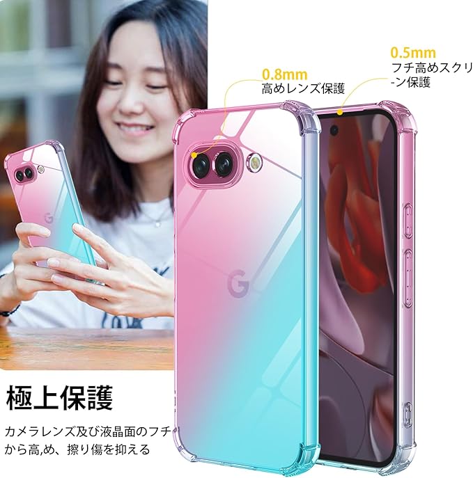 対応 Google Pixel 9a 用 ケース クリア TPU 薄型 軽量 Pixel 9A カバー グーグルピクセル9a バンパー マホケースグラデーション色 ケース 耐衝撃 米軍MIL規格取得 滑り止め 黄変防止 防塵 一体型 人気 携帯カバー(ピンクグリーン)