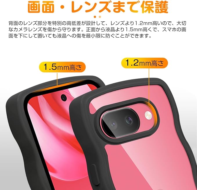 【全面保護・滑り止め機能】カメラレンズの周りに段差をつけて擦り傷を防ぎます。携帯電話ケースの側面は波型のデザインを採用しており、グリップが良く、携帯電話が誤って落下するのを効果的に防ぎます。