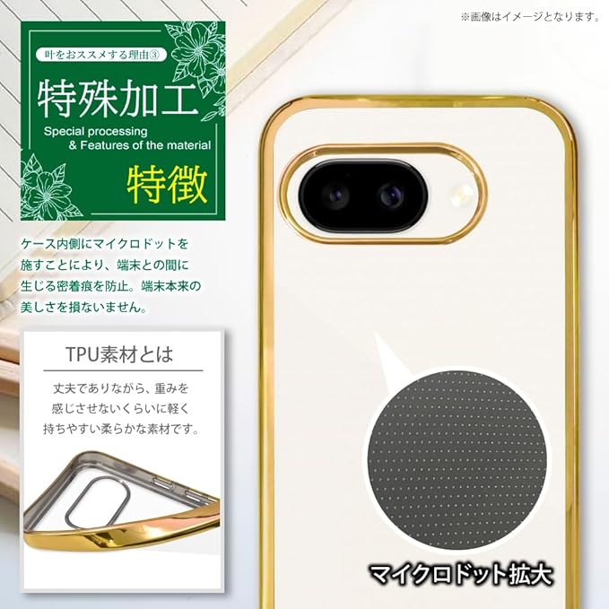 叶kanae カナエ Google Pixel 9a クリアケース ケース カバー サイドメッキ加工 クリア ケース 1個入り ゴールド クリア