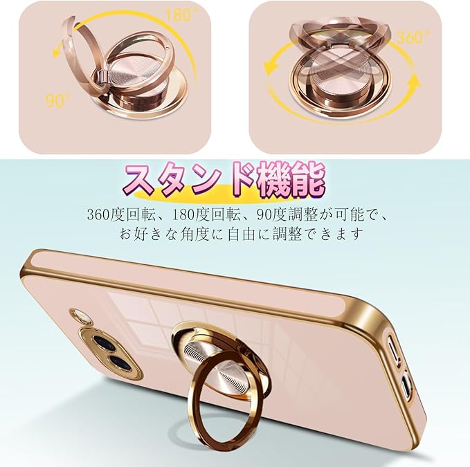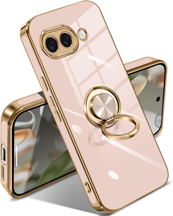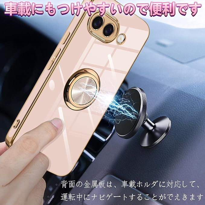 Google Pixel 9a ケース リング付き リング ピクセル9a カバー 耐衝撃 人気 米軍MIL規格 メタリックな質感 TPU 軽量 携帯カバー スタンド機能 車載ホルダー対応 360 回転 指紋防止 (ピンク)