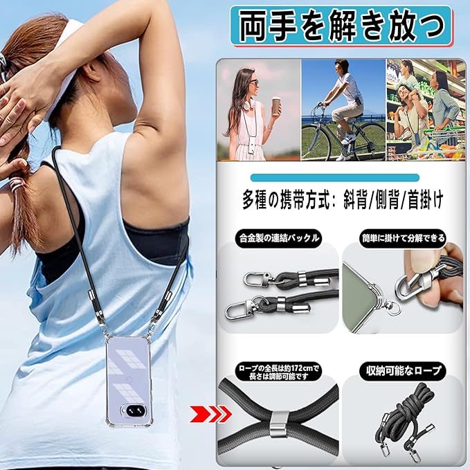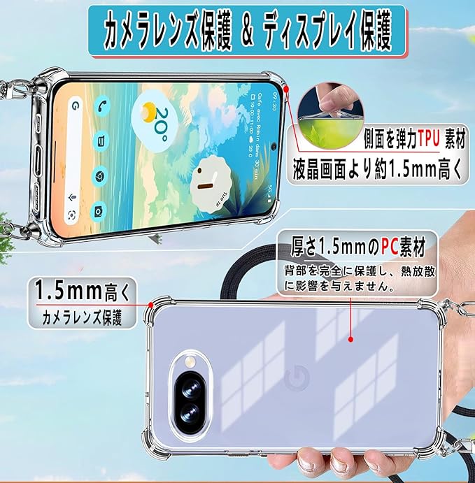 Google Pixel 9a ケース グーグルピクセル9a カバー [ストラップ2枚付き] 調節可能な ショルダー 肩がけ 首掛け 紐付き ストラップホール付き 薄型 透明 PC+軽量 シリコン TPUバンパー [耐衝撃 ワイヤレス充電 傷防止 全面保護 米軍MIL規格 防指紋 カメラ保護] スマホケースPixel 9a(クリア)