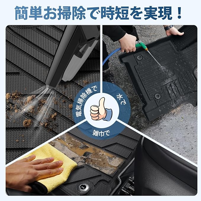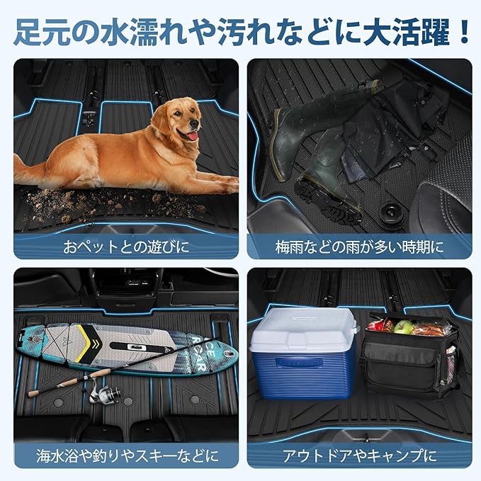 3Dマット・簡単掃除:汚れが気にならず、掃除機や水拭きで簡単にお手入れできるので、車内をいつでも清潔に保てます。さらに、従来の絨毯マットとは異なり、弊社の新型アルファード40防水マットは縁高の3D立体構造を採用しており、泥や水の侵入をしっかり防ぎます。汚れや水滴が気になる方に最適で、日常使いはもちろん、アウトドアシーンや色々なシーンでも活躍するアルファード40立体マットです。