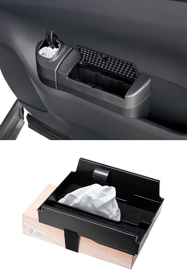SY-AV8 40系 アルヴェル専用 サイドBOXゴミ箱プラス 運転席用 商品説明 40系アルファード・ヴェルファイア(AAHH4#/AGH4#/TAHA4#)右ハンドル車の運転席側フロントドアポケット専用のゴミ箱&折りたたみ式ハンディーモップ(専用ケース付き)です 専用設計で、運転席側フロントドアポケットにピッタリフィットします 運転席側フロントドアポケットに入れるだけの簡単取り付けです フタを押すと開き、フタを閉じて押すとロックする構造で、簡単に開閉することができます フタにはダンパーを採用し、スムーズな動きで開きます たまったゴミは本製品のゴミ箱を上下分割して捨てることができます ホコリをしっかりキャッチする極細繊維のハンディーモップを付属しています 内装に合わせた革シボ調です ゴミ箱の容量は約1.3Lです 調査日(2023年5月現在)以降のマイナーチェンジ車には適合しない場合があります 運転席側フロントドアポケットに追加オプションが装着されている車両へは取り付けできません SY-AV10 40系 アルヴェル専用 コンソールボックスインナートレイ 商品説明 40系アルファード・ヴェルファイア(AAHH4#/AGH4#/TAHA4#)右ハンドル車のコンソールボックス専用のトレイです 専用設計で、コンソールボックスにピッタリフィットします 両面テープで貼り付けてセットするだけの簡単装着です スマートフォンや財布等の小物を手軽に置けます 収納物が傷付かないクッション付きです センタートレイ裏側にボックスティッシュをベルトでセットできますボックスティッシュの取り替えはベルトを調節するだけで簡単に行なえます 内装に合わせたシボ調です 調査日(2023年5月現在)以降のマイナーチェンジ車には適合しない場合があります コンソールボックスに追加オプションが装着されている車両へは取り付けできません 収納物によっては、コンソールボックス内の電源等が使用できなくなる場合があります 本製品は下記の条件を満たすボックスティッシュに対応します 袋入りタイプのティッシュには対応しません