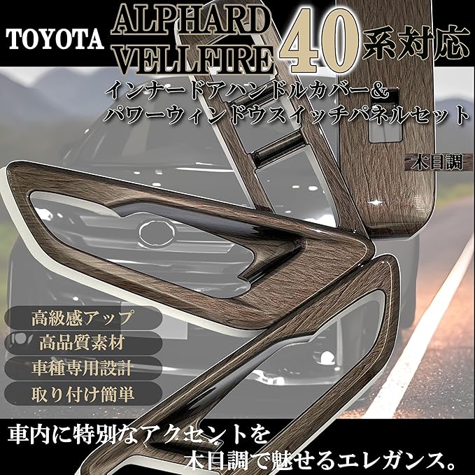 新型 アルファード 40系 ヴェルファイア 40系 アクセサリー 内装 カスタム パーツ ウィンドウスイッチパネル インナードアハンドルカバーセット (木目調)