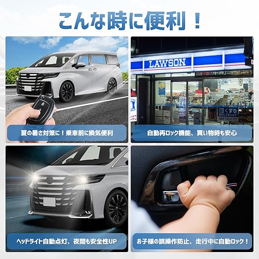 【全窓開閉等全14機能搭載で利便】ウィンドウ自動開閉・カミングホーム・循環ロックなど全14機能搭載で真夏の炎天下、乗車前換気可能になる一方、ヘッドライト自動点灯、夜間も安全性UPできます。さらに、自動再ロック機能、買い物時も安心!色んなシーンでも活躍できるアルファード・ヴェルファイア40系多機能ハーネスです。