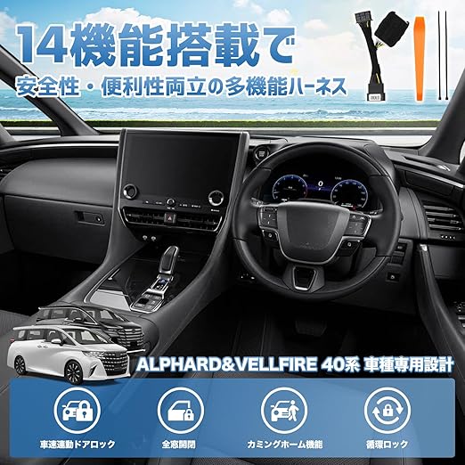 全14機能 トヨタ 新型 アルファード ヴェルファイア40系 多機能ハーネス 車速連動 ドアロック オート エンジン連動 全窓開閉 循環ロック カミングホーム ALPHARD/VELLFIRE 40系 専用 多機能 キット カプラーオン 簡単取付 夏場換気 ドアロック 夜間サポート 安全性 便利性向上 取付工具&説明書付き