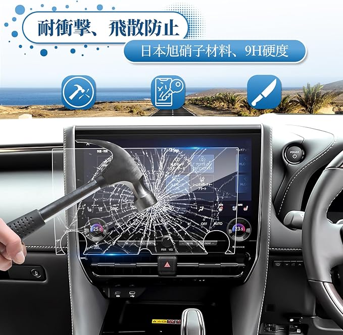 【高光透過率・9H強化ガラス】硬度9H強化ガラスフィルムを採用して作られたアルファード40系カーナビフィルムは、高硬度で割れ防止、キズ防止の特性を持っています。車種専用設計で、アルファード40系のナビにジャストフィットします。 厚さ0.25mm、99%の光透過率、ナビの鮮明さと精度を維持することができます。 2.5Dラウンドエッジ加工を採用し、エッジがスクリーンに良くフィットし、気泡の侵入を軽減すると同時に、外部からの衝撃に強く、破損を防止し、カーナビを守ります。