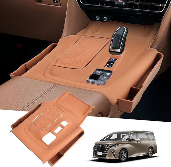 【GAFAT】アルファード ヴェルファイア 40系 シフトパネル カバー 40アルファード コンソールパネルカバー アクセサリー サイドポケット付き キズ 汚れ 指紋防止 ヴェルファイア 40系 アクセサリー シリコーン インテリアパネル 小物入れ 滑り止め 防水 カスタム パーツ (茶色、エレクトロシフトマチック専用)