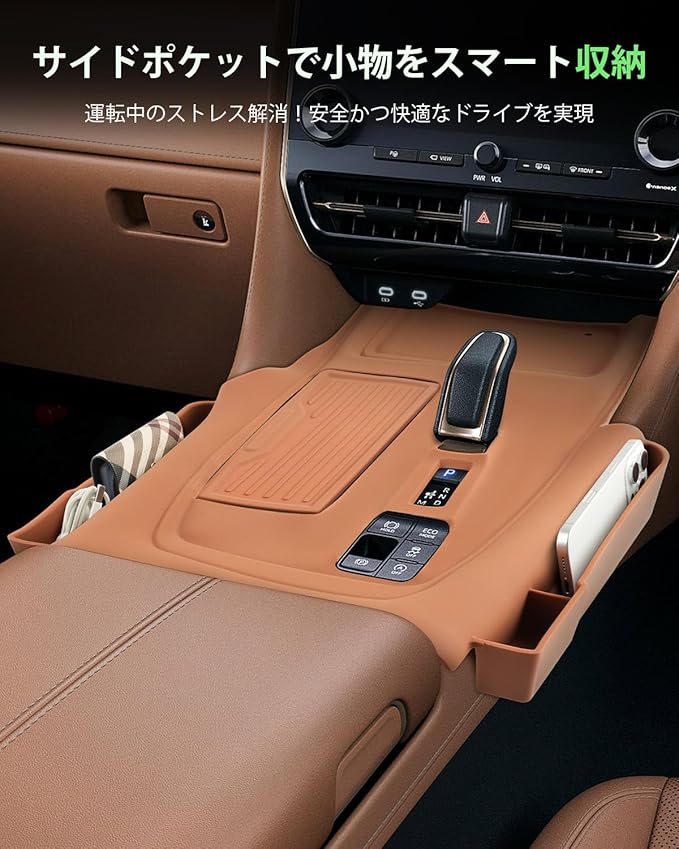 【簡易設置・効率収納】アルファード40系シフトパネルカバーシリコーンマット は貼り付けや工具は必要ありません。30秒で置くだけで雑然としたセンターコンソールを整然とした空間に変えま,運転体験を即座にアップグレードします。シックなブラックカラーはヴェルファイア 40系車内インテリアに調和いたします。サイドポケット付き設計により、スマホ・ETCカード・鍵などをしっかりと固定いたします。信号待ちでの小物探しのストレスから解放されます。