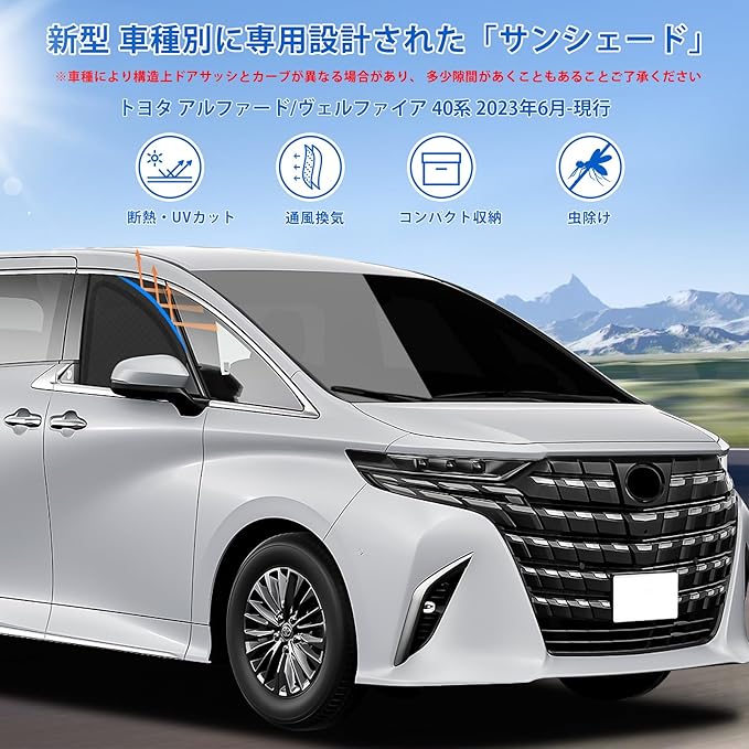 新型 アルファード ヴェルファイア 40系 専用 サンシェード マグネット式 サイド用 車種専用 2in1一体式 カーシェード Alphard Vellfire 4代目 メッシュカーテン 換気 断熱 日除け メッシュサンシェード 日焼け防止 UVカット 遮光カーテン 日差し 紫外線カット 虫よけ 通気 運転席 助手席 アクセサリー カスタム パーツ 2枚