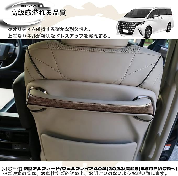 適用 新型 アルファード40系 ヴェルファイア 40系 カスタム アクセサリー パーツ 専用車種 室内装 用品 グッズ インテリア バックシートハンドルトリム ガーニッシュ パネル カバー 木目調ブラウン