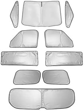 【セット内容】フロントガラス用x1枚、三角ガラス用x2枚、一列目ガラス用x2枚、二列目ガラス用x2枚、三列目ガラス用 2枚、リアハッチガラス用x1枚、合計10枚