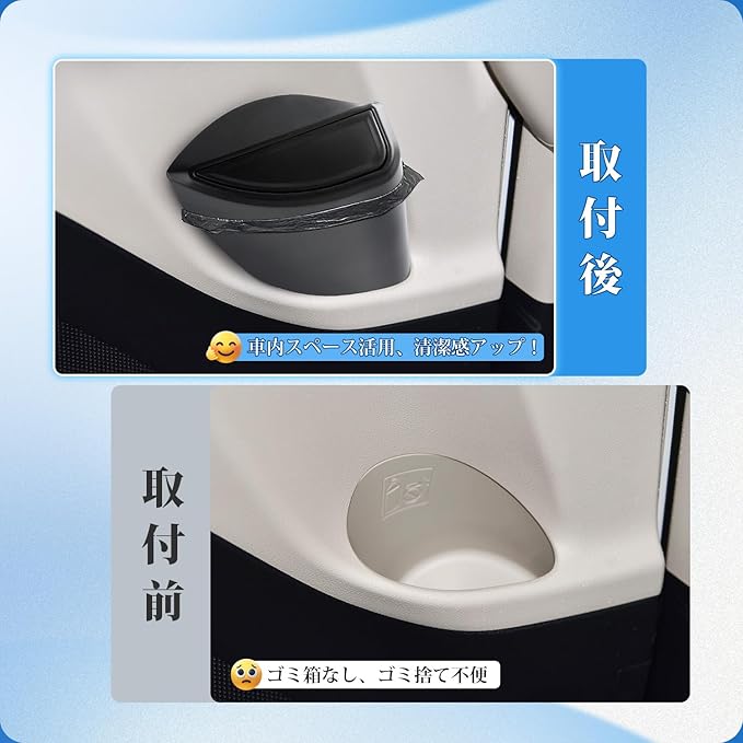 【デッドスペース活用&取付簡単】車内空間を最大限に活用、ゴミ捨てる場所がない悩みを解消します。取り付けも意外と簡単、ドアハンドルに差し込むだけで取付完了!