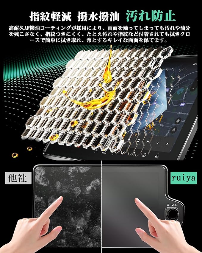4.【撥水撥油・指紋・汚れに強い】高耐久AFコーティングが採用により、画面を触ってしまっても汚れや水分油分を残こさなく、指紋がっきにくい アルファード 40系 カーナビ フィルム です。たとえ汚れや指紋など付着されても拭きクロースで簡単に拭き取れ、常とするキレイな画面を保てます。