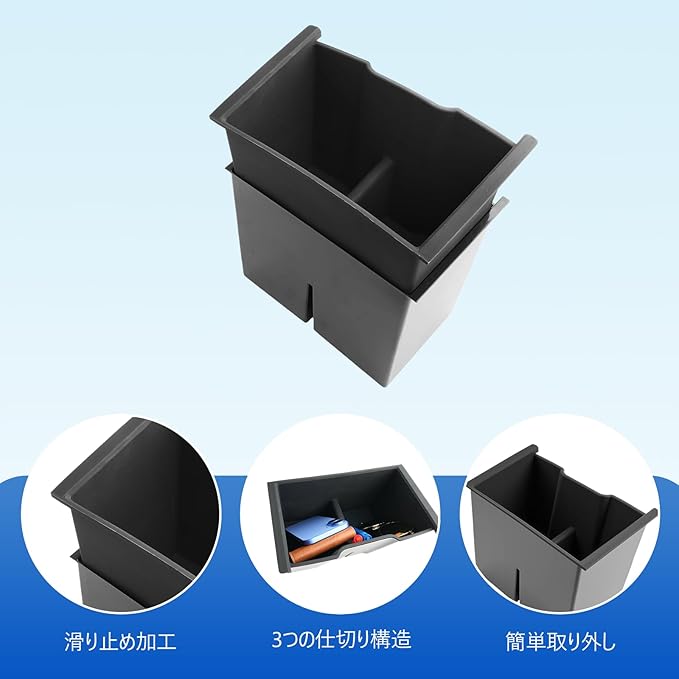【収納力アップ・ 空間を有効活用】車内空間をスッキリ整理整頓。スマートフォン、鍵、小銭、カード類などの小物類をすっきりとまとめることができ、必要な物をすぐに取り出せる快適な車内空間を実現します。中央には仕切り付きデザインを採用しており、物を種類ごとに分けて収納可能。車内空間をさらに便利に活用でき、ドライブ時のストレスも軽減されます。
