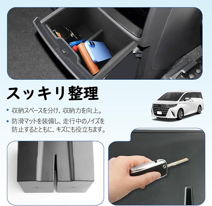 SHAOHAO 2025新型 アルファード40系/ヴェルファイア 40系 専用 センターコンソールリヤボックス アルファード40/ヴェルファイア 40 コンソールリヤ収納ボックス 車内収納 シリコンパッド付き 小物入れ ガタガタ音なし アルファード40系アクセサリ ヴェルファイア 40系カスタムパーツ 車用品