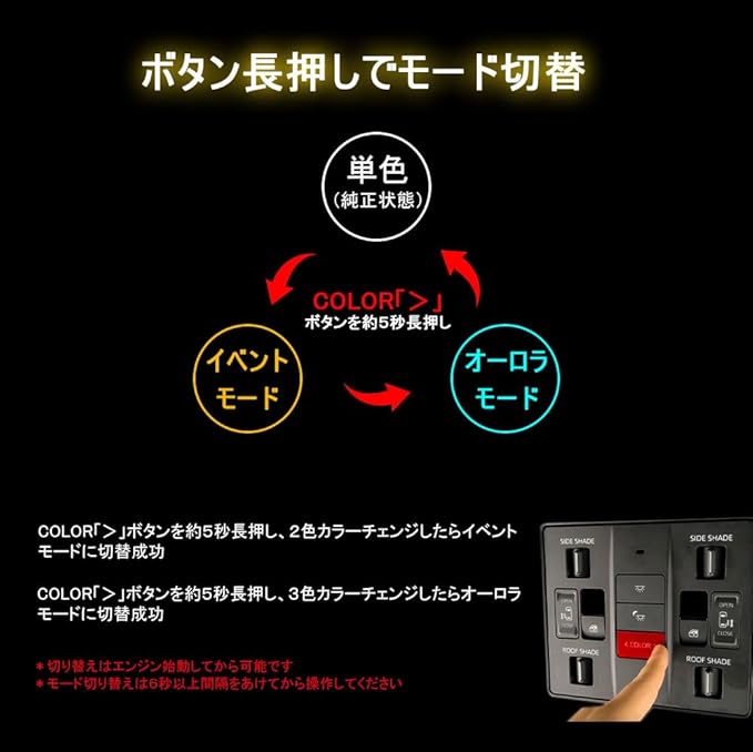 40アルファード 40ヴェルファイア 40系用 ルーフカラーイルミネーションキット 走行中点灯 自動点灯 カラーチェンジ オート化 モード切替 カスタムパーツ ボン付け 完全カプラーオン 簡単取付