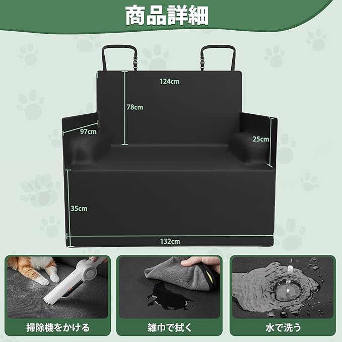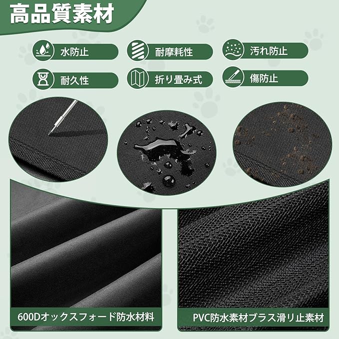 3.【汚れ・摩耗性・耐傷性】:高品質のオックスフォード素材を使用しており、耐摩耗性・耐傷性に優れています。さらに、左右の縦幅を広く設計しているため、雨や雪の日でも、ペットとのドライブ時でも、車内をしっかりと保護します。汚れた場合でも、濡れた雑巾で拭くか、取り外して水洗いするだけで簡単に清潔になります。