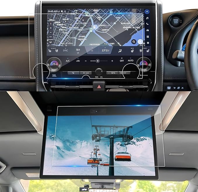 2枚入り ナビ+後席モニター 保護フィルム 強化ガラス トヨタ 新型 アルファード/ヴェルファイア 40系用 全面保護 ナビ 14インチ 13.2型後席ディスプレイ V13T-R72F スクリーン保護フィルム ディスプレイオーディオフィルム 9H キズ防止 汚れ防止 極薄 高感度タッチ 自己吸着 貼付簡単 カーアクセサリー