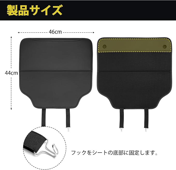 4.【簡単取付】丁寧に寸法を取って完全な車種別専用設計なので、お車にピッタリとフィットします。面倒な加工が必要なく、本製品を車のシートバックに被せ、フックをシートの底部に固定するだけの簡単作業ですので、誰でも簡単に装着できます。