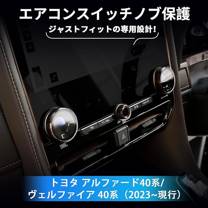 SXCY 新型 アルファード/ヴェルファイア40系 専用 エアコンダイヤルカバー アクセサリー 内装パーツ 内装 保護 センターコンソールエアコンノブカバー カスタムパーツ 内装グッズ ガラス鏡面 ブラックゴールド 金