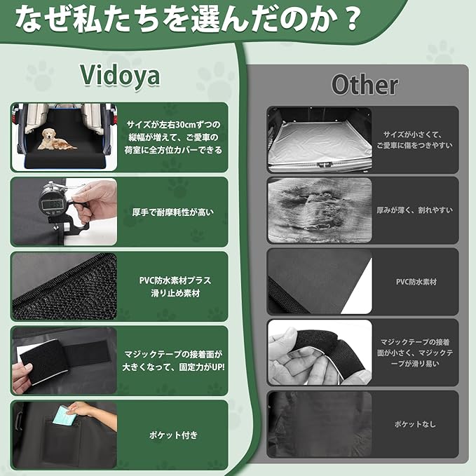 3.【汚れ・摩耗性・耐傷性】:高品質のオックスフォード素材を使用しており、耐摩耗性・耐傷性に優れています。さらに、左右の縦幅を広く設計しているため、雨や雪の日でも、ペットとのドライブ時でも、車内をしっかりと保護します。汚れた場合でも、濡れた雑巾で拭くか、取り外して水洗いするだけで簡単に清潔になります。