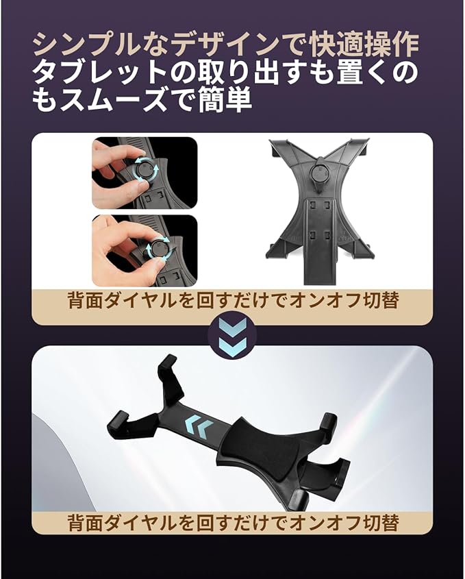 【しっかりホールド、走行中も安心】LUWUのアルヴェル40系後席タブレットホルダーは、独自開発の固定メカニズムを採用しており、どんな道でもしっかりとスマホをホールドします。急加速やカーブでもズレることなく、走行中の視認性を確保。さらに、内蔵された衝撃吸収ジェルパッドが振動を吸収し、大切なタブレットをしっかり守ります。