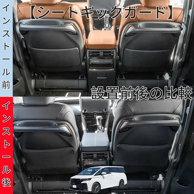 新型 アルファード40系 ヴェルファイア/ベルファイア 40系 カスタムパーツ アクセサリー キックガード 後部座席 シートバックカバー シートバックプロテクター 収納ポケット付き 2PCS ブラック