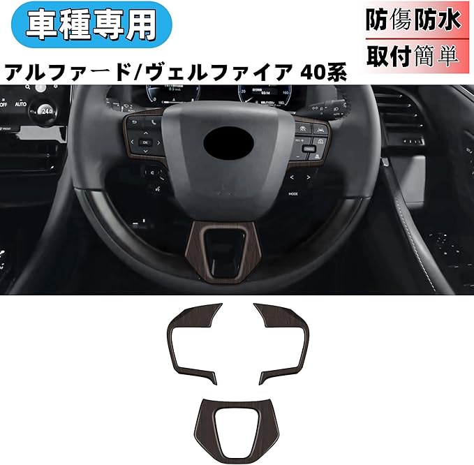 新型 アルファード/ヴェルファイア40系 に適合 アクセサリー ステアリングパネル カバー ステアリングホイールトリムパネル 専用カスタム 内装パーツ (木目調ブラック)