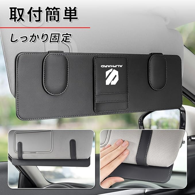 アルファード カー サングラスホルダー メガネクリップ2つ カード用ポケット3つ サンバイザーに嵌め込む 対応 Alphard 40系 30系 20系 しっかり固定 PUレザー マグネット式 使いやすい 車 アクセサリー 大きいサイズ メガネクロスをプレゼント