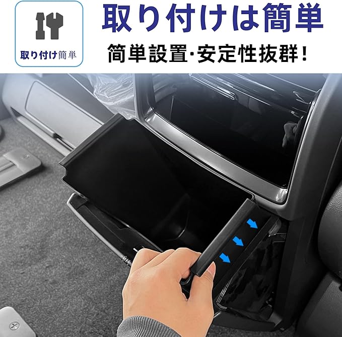 【専用設計】原車のラジアン型開き設計に貼り合わせ、蓋がシームレスに閉じることで運転中のがたつき音や異音を完全に防止します。隠し収納設計により空間を効率的に活用し、鍵やカードなどの小物を収納でき、ダッシュボード周りを整然と保ちます。実用性とデザイン性を兼ね備えた車載アイテムです。