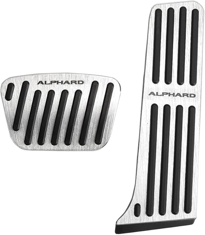 適合トヨタ アルファード 40系(2023年6月~) アルミペダル カバー ブレーキペダル 工具不要 専用ロゴ 取付簡単 内装 カスタム アクセサリー 防キズ 防汚れ 滑り止め 2点セット (シルバー)