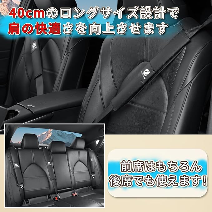 アルファード 専用 シートベルトカバー 40CM 長いサイズ 肩の圧迫感軽減 ALPHARD アルファード 30系 40系 20系 カスタム アクセサリー シートベルト ストッパー クッション 肩と首の保護 てシートベルトの擦り傷を防止し マジックテープ取り付け 内装パーツ 車用品(2本 ブラック)